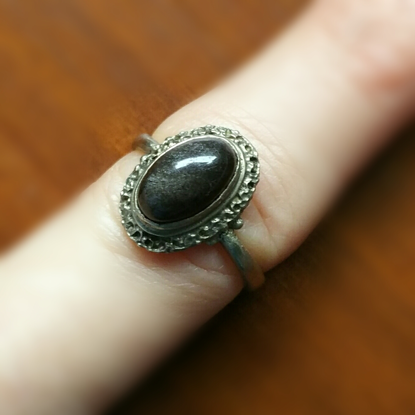 The last ring we discuss is a celestial-themed toe ring. This toe ring is .925 silver with an applied patina. Made in 2015, the toe ring has a perfect aged patina thanks to liver of sulphur. You can tell the difference between a newer liver of sulphur patina and an organic patina right away, by the crispness of the patina. The new patina ends abruptly; there is no fading. Over time, it is more difficult to tell which patinas are genuine and which are not.