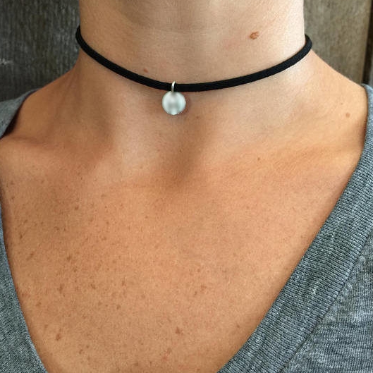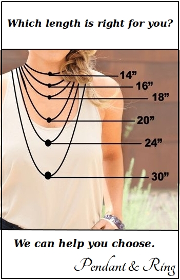 Necklaces come in many different lengths. What length you like best is often determined by your own personal style. When looking at photos online, keep in mind, no two people have the same shape. Some people may have thicker necks, or longer torsos, or deeper hollows between the collar bones. Some people feel comfortable in a collar while others find it uncomfortable. When deciding on a chain length – think about your favorite necklace, or look at the clothes you intend to wear the necklace with. We live in a time when style is personal, and the best style is the one that makes you feel most confident.