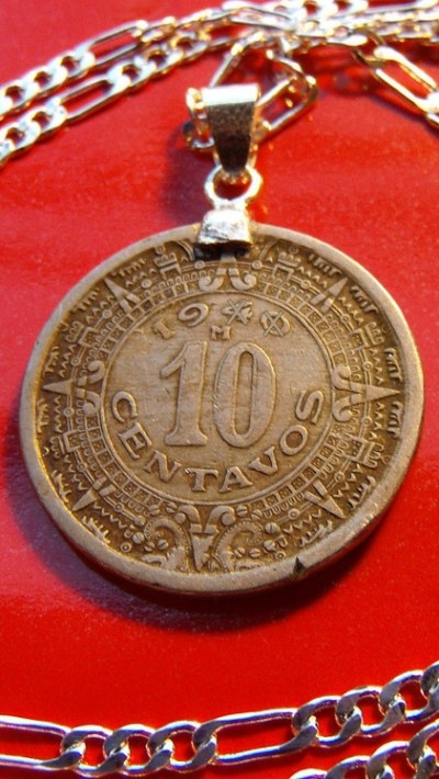 ๐ฒ๐ฝ Antique Mexican, Aztec 10 Centavos Coin Pendant ๐ฒ๐ฝ !