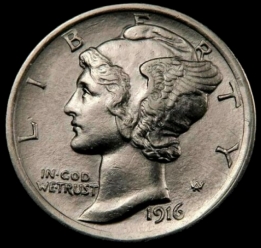 The “Mercury” dime was minted from 1916 to 1945 but it is not truly a bust of Mercury. Instead, it is the Winged Liberty Head Dime.