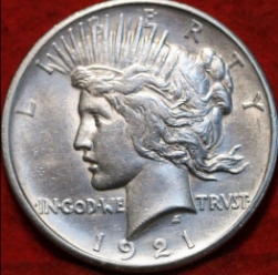 1921 Peace Dollar is the result of legislation that mandated the minting of Silver Dollars. The Peace Dollar design commemorates the end of WWI. Yet, a second run was minted in 1934-35 (to fulfill legislative requirements) even as the first stirrings of WWII commenced in Europe.