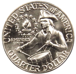 The reverse design of the Bicentennial Quarter, Half Dollar and Dollar were chosen, after much deliberation, through a government contest for all US sculptors beginning in 1973. The winner of the Quarter Dollar contest was Jack L. Ahr. In the summer of 1974, Mr. Arh watched as his design rolled off the mint as a prototype. A year later US mints began producing the Bicentennial Quarters and continued production until 1976.