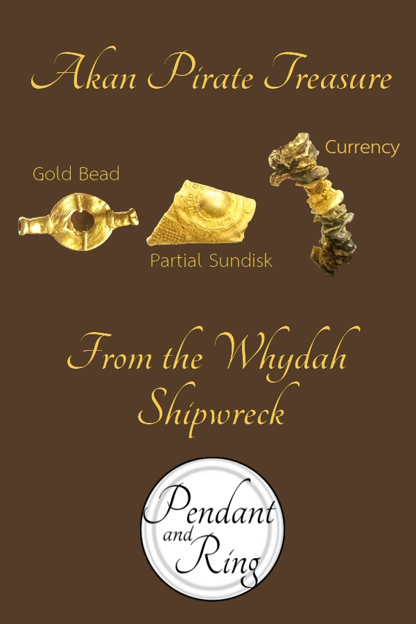 in West Africa. The Akan territory encompassed modern day Ghana and much of the Ivory Coast. Knowing the story of gold helped researchers identify the slaves on the maiden voyage of the Whydah as Akan people, ergo the jewelry was most likely of Akan origin. When the researchers looked at historical examples of Akan jewelry the similarities were obvious. Yet, a large pirate vessel like the Whydah, with a year’s worth of pirate treasure in its hold should have provided Clifford’s treasure hunters with more loot. In 2016, Clifford announced a discovery: More of the ship’s cache. However, at least at the time of writing, the pirate booty has yet to appear.